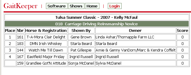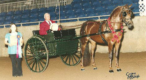 Gene Brown, whip. My pretty pretty girl. This is T-A-Mora Clair Delight (Hi-Fi Eben Moro x Aquila's Total Devotion) in her ribbons and roses at Tulsa Classic, Champion in Carriage Division Novice. Clair is 4 years old and this was her first appearance in harness. She is our very first Morgan baby of our breeding after the Morgan bug bit us 6 years ago, so she is very special to us for many reasons. |